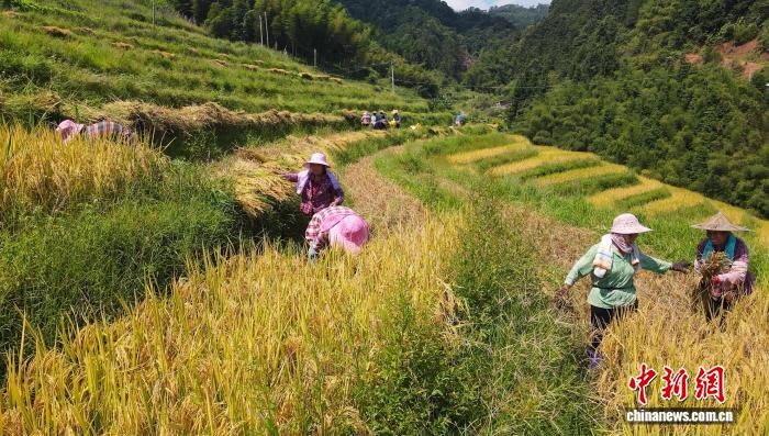 畲族村平易近用保守体例支割稻谷。华安县融媒介重点供图 据领会,因为往年雨火脚、光照美,加入县农技内行元首迷信栽种,估计亩产上千斤。村里培养的特性种类“黑头岩年夜米”果发展周期少、山泉浇灌等上风,市集卖价较平凡稻谷溢价昭著。这类“劣量劣价”的耕耘形式,让村平易近们正在守旧农耕中尝到了科技兴农的优点。